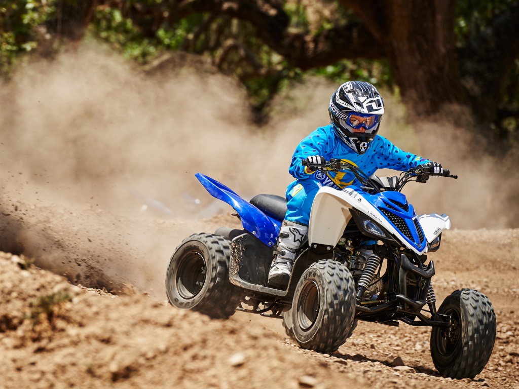 Комплектация Yamaha YFM90R оснащена вариаторной коробкой передач, 0.1 литровым двигателем (6 л.с.). Данная модификация обладает задним приводом. Стоимость данного квадроцикла составляет 316 150 руб.
